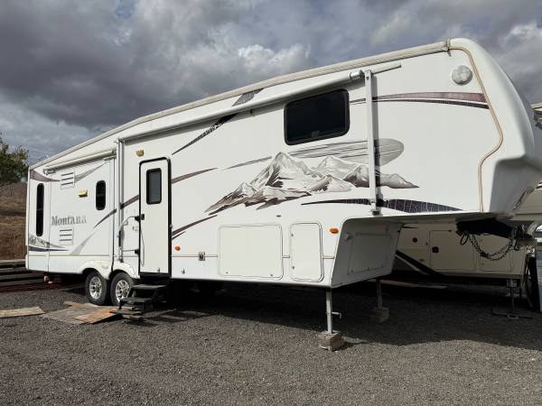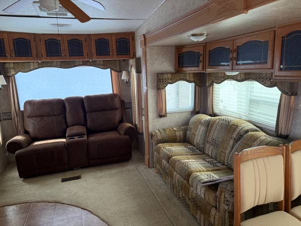 3 pop out with roll out covers Queen bed Reclining loveseat Couch with hide a bed 50” TV rotate to travel New battery And tires