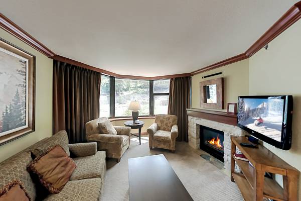 After a day of adventure, unwind in the open living area while watching your favorite shows on the TV, or Bluetooth connect to a Bose sound system. The gas fireplace sets a warm ambience.