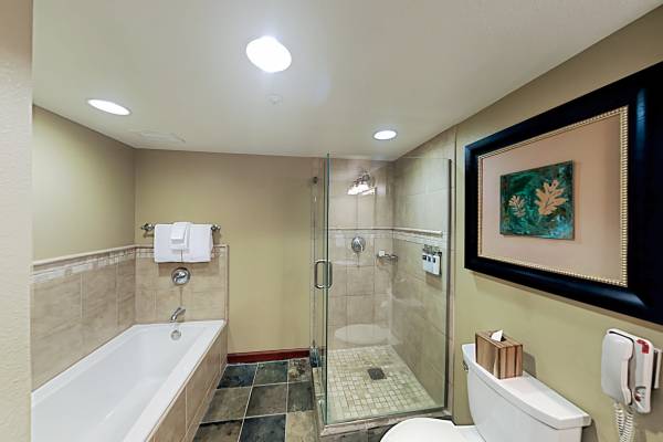 As part of the resort, you’ll enjoy two heated pools, hot tubs, and on-site access to one of the most luxurious spas in the area. Cast a line on the stocked fishing pond or play a round of golf on the professionally designed course. Schedule a guided horseback riding tour; or explore the hiking and backpacking trails.
