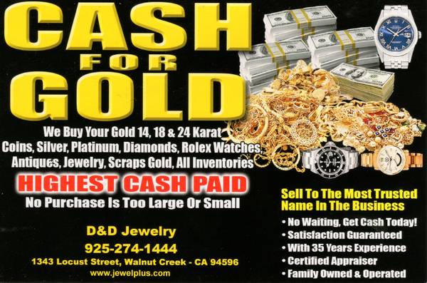 If you are in the San Francisco Bay Area and would like to sell your jewelry and receive instant cash, please call 925-274-1444 for an appointment. You can also Schedule an Appointment online.