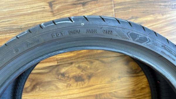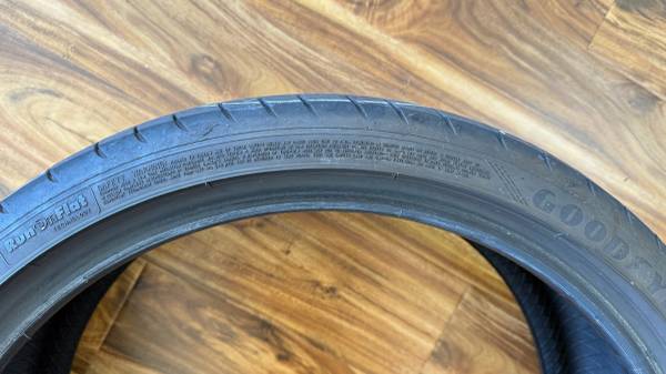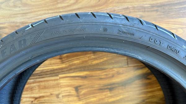 Used. from BMW 541i front, ran 19000 miles. made by 25 weeks of 2022 Goodyear Run on Flat 245/35R20 95Y Eagle® F1 Asymmetric 5 tire Treadwear 300 Extra load Max load 1521 lbs 50PSI