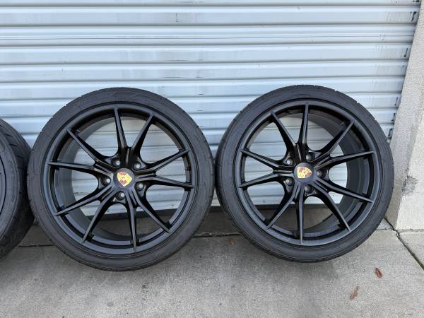OEM factory Porsche 20” wheels made in Italy. Take-offs from a Cayman S 718 Wheels have been cleaned up nicely with only minimal signs of use. Tires are NITTO NT 555 G2 - Made in The USA About 90%...