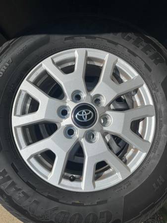 OEM 2025 Tacoma SR5 wheels and the tires that came on them. Driven for less than 400 miles. Wheel Diameter: 17" Wheel Width: 7" Bolt Pattern: 6x139.7 Wheel Offset: +55mm Tires: Goodyear Wrangler...