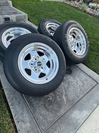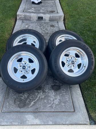 FOUR CENTERLINE FORGED RIMS AND TIRES. 15” STAGGERED. I BELIVE THEY ARE 15”x8” IN THE FRONTS AND 15”x10” IN THE REARS. BRAND: CENTERLINE TELSTARS FINISH: POLISHED. BOLT PATTERN: 5x5 (5x127) 5 on 5...