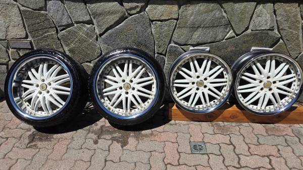 2 each 20 x 8.5 front,2 each 20 x 10 inches rear which have the tires on them Lexani Luxury rims Tires 25535ZR20 LIKE NEW 5K WEAR for Honda/ Infinity or Lexus/ Toyota