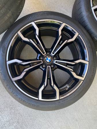 up for sale is a set of 21" oem wheels/tires from a 2022 BMW X3m these are factory original BMW wheels, not aftermarket/replicas wheels are in excellent condition no visible bents, cracks and welds...