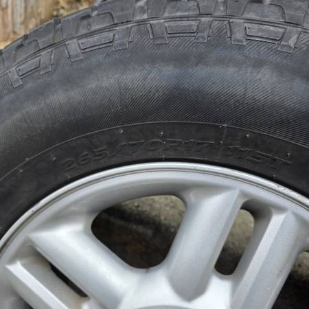 I have a set of (4) Pathfinder AT tires and wheels. 265/70R17. These came off a 2004 ford Expedition. I have all caps, and lug nuts and the tires are almost new, and have many more miles left on them as you can see from the pictures. These tires alone sell for $214.00 each before tax. If this add is up, they are available and I am pretty firm on the price. If you are a scammer or ask if it is available, i will delete you. if you are a serious byerr, call me. Five one zero five six six 2248