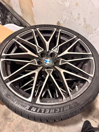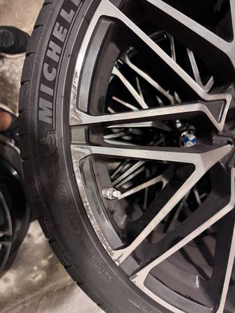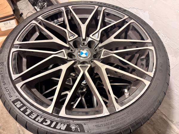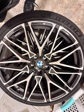 For sale is a set of aftermarket BMW rims from my BMW 8 series - removed as I wanted a different look. There are 5 rims and 2 usable rear tires - Michelin PS4S