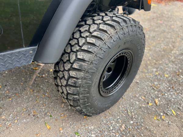 Set of five tires and wheels. Four 35x12.5R15 Cooper Evolution M/T tires with ton of tread on 15" beadlock wheels. Spare wheel is the same but tire is different brand. Tires are in great shape. Couple of wheels have slight bend inside. Fits 1987-2006 Jeep Wrangler and other rigs with 5x4.5 lug pattern.