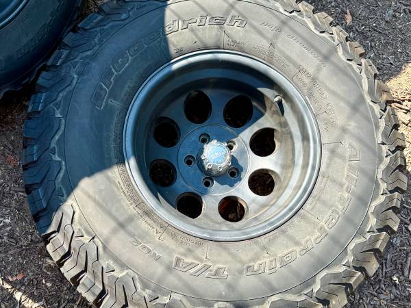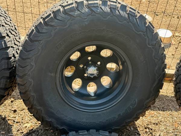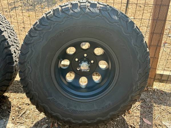 I have 5 tires and wheels for sale. Lug nuts included. They are coming off a Jeep Wrangler JT. Age of tires unknown. Deep treads and knobs still present. No damage. Mounted and inflated. Ready for...