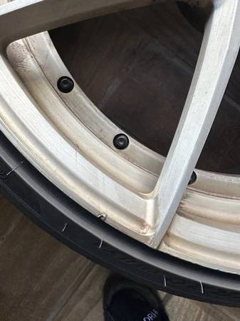 I am selling my used Brixton Forged WR3 front and back wheels! Some scratches/rashes are evident as seen in the photos. Inside of one wheel there is a blemish (refer to photo) but the tire loses no air. Two tires are in a good shape and two would need to be replaced soon.