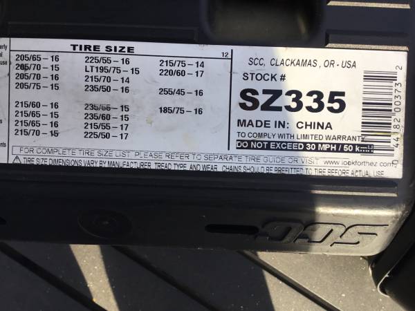Chains (cables), original packaging, never used $25 each. See photos for tire size