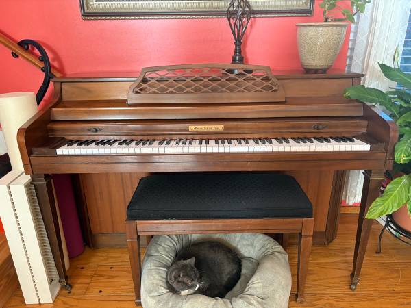 It’s been rebranded, but it’s still a Kimball piano. Seat will need some repair. Delivery not included. Will include some sheet music as well.