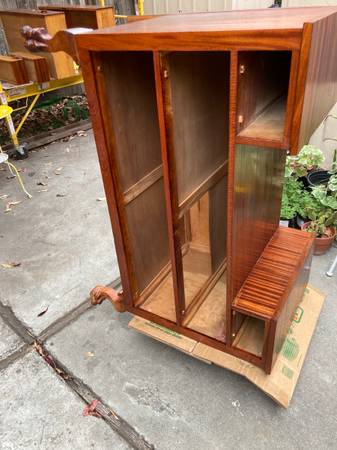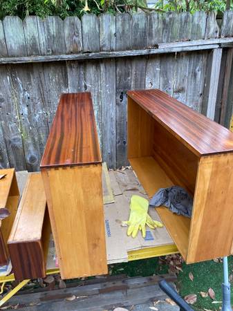 Vintage dresser with mahogany veneers. Still very functional with some wear and blemishes. Free with small donation to my friends charity.