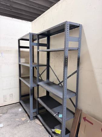 We have just moved to a new location and are getting rid of the following items. Metal shelves Metal filing cabinets desks