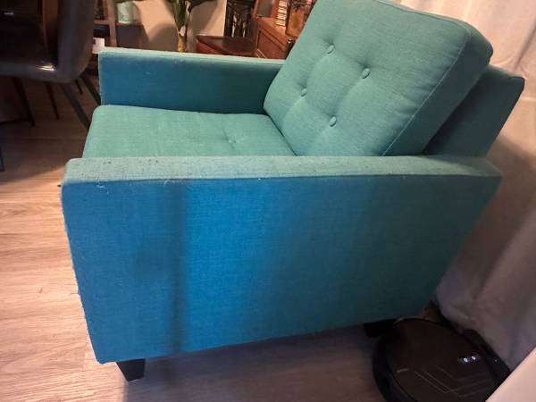 Teal color accent chair. Has cat scratches. Please see pics. Pick up in Concord.