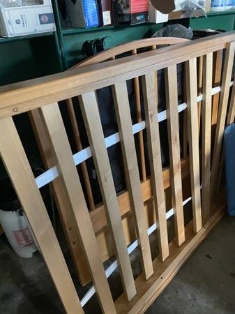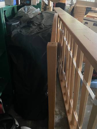 As stated. Free twin bed frame and mattress. Text me. Don't call. My phone doesn't take unknown numbers. I don't deliver cause I don't have a truck. Mattress is protected in a black cover.