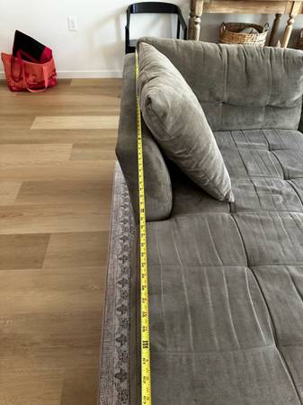 Free Macys 3 piece sectional and ottoman! Large gray sectional with matching ottoman. Comfortable and sturdy. Used condition with visible wear/shading from normal use (see photos). No rips or broken...