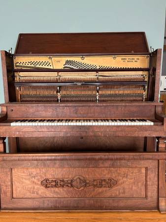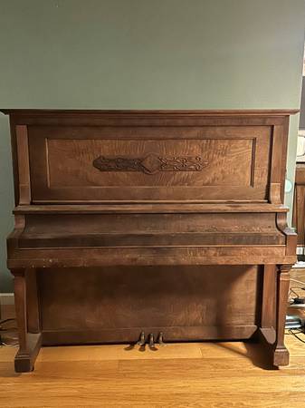 It hurts to do this, but this is a 1913 Upright Piano made by the Bond Piano Company. Wanted to donate it but there were no takers. Still plays well. So we are now resorting to taking this piano apart and putting it into the dumpster. If anyone has any connections on someone wanting this piano or wanting the parts, please contact me here. Demolition will be happening around 4-5pm. Thanks for you consideration.