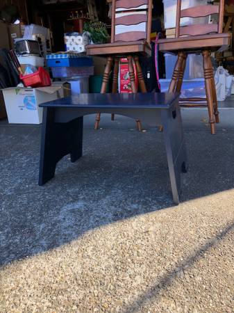 Used blue step stool, 20 inches long by 14 inches wide by 14 inches high, scratches and nicks but solid located near St. Marys College in Moraga