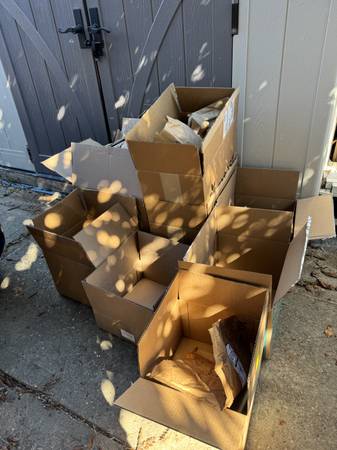 Assorted boxes (see photo) and two big bags of packing paper, from shipments received.