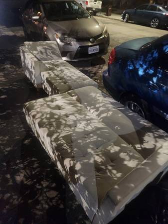 couch folds into bed. super soft. 7x5 estimate. table about 3.5 × 5 both items great condition. Get it before the rain.