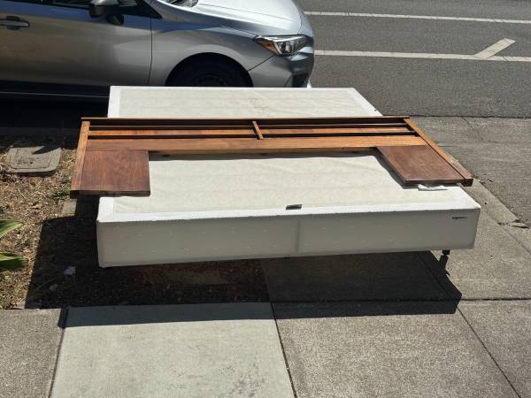 Beautiful wooden headboard-KING, also works for a cal king bed--giving away alongside cal king box spring and cal king metal frame. Everything is in good used condition, needs another dusting but from a smoke free home-HEADBOARD CAN BE CAL KING OR KING, BOX SPRING AND FRAME ARE CAL KING ON CURB-HOWE ST BETWEEN 41ST AND RIDGEWAY IN OAKLAND