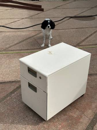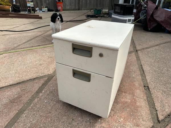 Free! 2 drawer metal filing cabinet on wheels. Works perfectly.