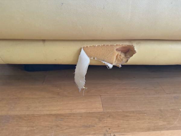 • Condition: Has a tear in the lower front (see photo), still very usable or good for someone handy with repairs/reupholstery