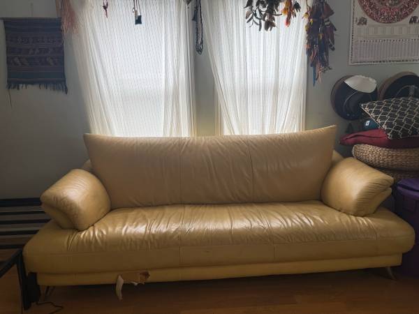 2. Leather Couch – Yellow/Beige