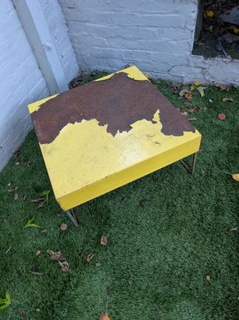 This low table has a great eighties vibe but the paint has almost peeled off. Should be a relatively simple job, or you can use it with a table cloth like I've been doing.