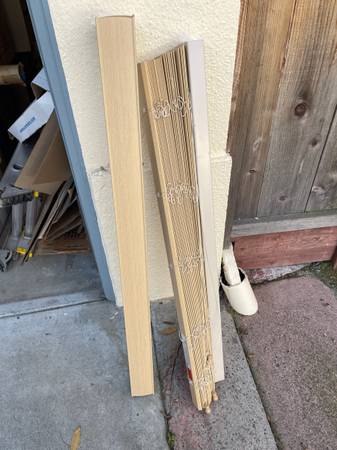 Free - Window blinds in faux wood for a window approx 43" wide x 44" tall. Includes valance.