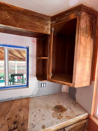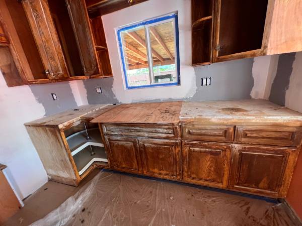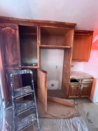 Free solid oak wood cabinets, need painting . For free fit a kitchen 111 inches by 97. For free in San Leandro. Call for pick up information. 408-906-904four