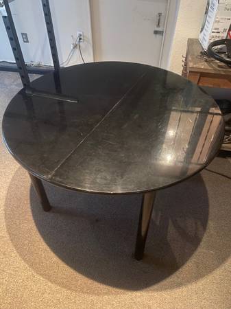 Table with leaf extension 29 inch height, 42.25 inch diameter without leaf