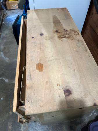 Variety of really good items, all free! The heavy oak (walnut?) kitchen table, a very nice bookcase (we made a hole for electric cords), Surfboard shaped coffee table, hall runners, Unfinished and tattered but totally functional dresser is free too. All of it free.