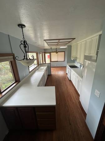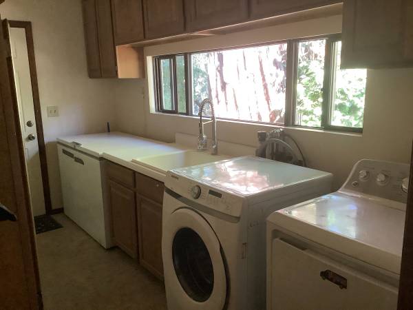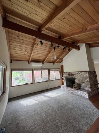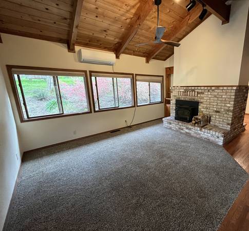Extraordinary and unique opportunity to rent a house on a working permaculture farm. 3 bedroom 2 bath, 2200 sq ft residence. Cathedral open beam knotty pine ceilings in living room/greatroom with woodstove insert in brick fireplace. Kitchen has oversized fridge, newer stove, and dishwasher. Lots of counter and cabinet space. Primary bedroom has ensuite bath. Hot tub. Solar. Spring water. You and your family can participate in and learn to farm if desired! Small livestock and pets welcome! Massage/yoga studio is there to share. Lots of other extras. Stunning views and redwood forest. Please call Elizabeth at show contact info