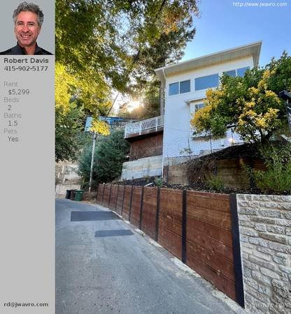 Can you say bright and gorgeous Bay and Mountain views? This home has it all: close to downtown Fairfax, a tranquil setting, 3 outdoor spaces, a separate office/art or yoga studio, and 2 parking spaces. Once you walk in the front door you won't want to leave. This is a non-smoking unit.Details: