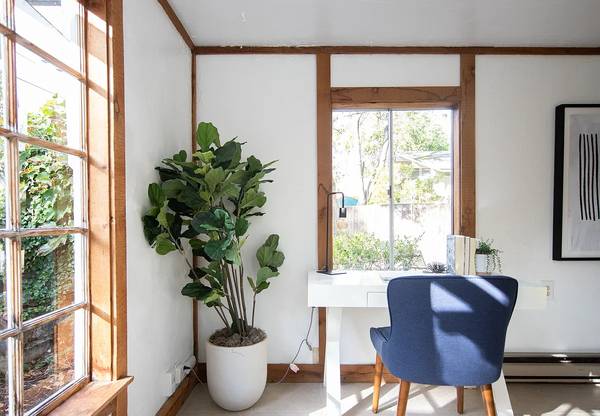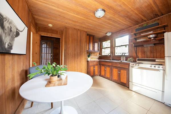 Built in the early 1900's of old growth redwood, it features two cozy rooms: a retro kitchen/dining room and a sunny bedroom/living area. New gas stove! The entrance is through a charming old-time stone arch under towering vintage oaks and is on a quiet street. There is a private side-yard sitting area which is great for bird and squirrels lovers or barbecues with friends. There is some additional storage space available for boxed items and bikes if needed.