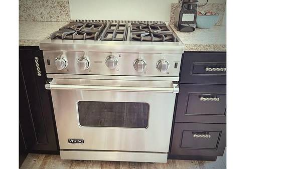 The interior features an open living area with designer furniture, warm wood flooring, and large windows that bring the outdoors in. A spacious balcony creates seamless indoor/outdoor living and is ideal for enjoying your morning coffee or a glass of wine at sunset. The kitchen is a chef's dream, outfitted with high-end Viking appliances, granite countertops, and plenty of storage making cooking at home both easy and enjoyable. The bedroom is spacious and includes a mounted television and a partial walk-in closet, and the bathroom is custom tiled with an elegant walk-in shower.