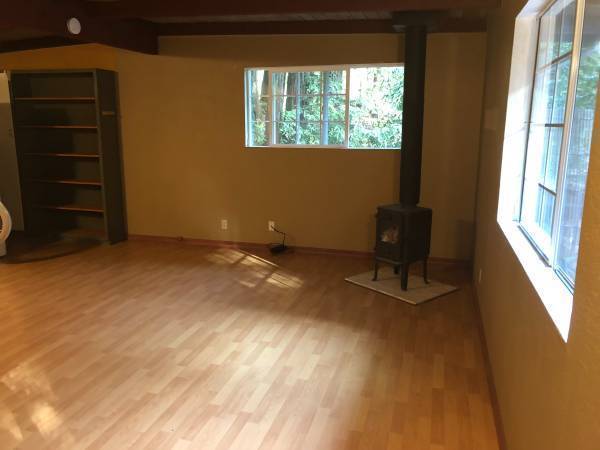 The house sits next to the tennis courts, community center, community garden and park, and the home is above the flood zone. The hot tub has not run in over a year. Maintenance/repairs of the hot tub would be the responsibility of the tenant. The house comes with a small sleeper sofa and a credenza. The long staircase up to the front entry may be challenging for those with physical limitations. Move-in costs = first month's rent and deposit of $1,000. Tenant handles all utilities.