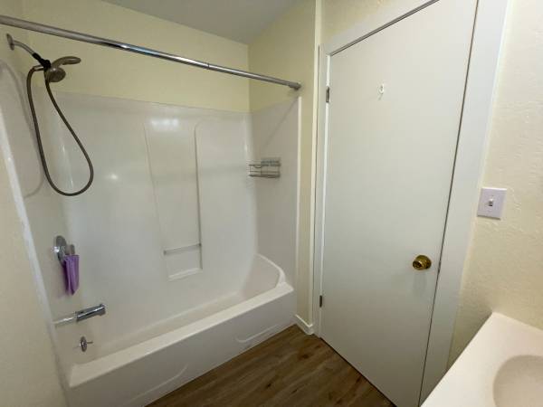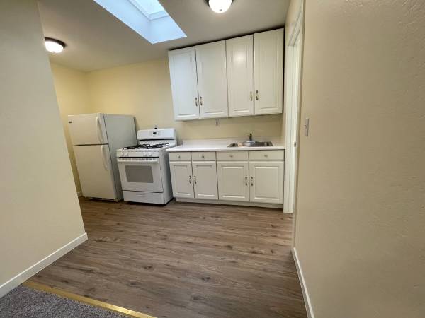 Large Studio with open concept; living, kitchen, high cathedral ceilings through living/sleeping area, full bath with tub/shower combo.