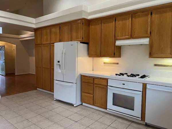 Especially lovely 3 bedroom, 2 bath home in desirable, quiet cul-de-sac location. Spacious Great Room, large tiled Kitchen with Oak cabinets, bay windows, tiled bath with oversize jacuzzi tub in primary bathroom, central heat and A/C, large private yard. Attached 2 car garage. Non-warranted washer and dryer available for tenant use.