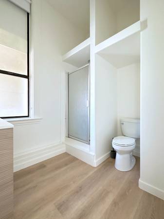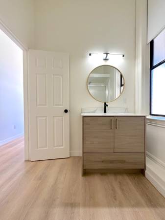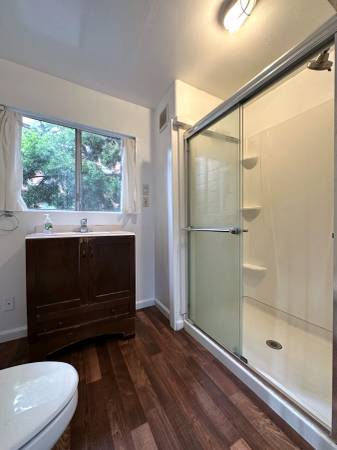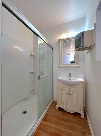 Full bathroom with step-in shower, new vanity and modern fixtures