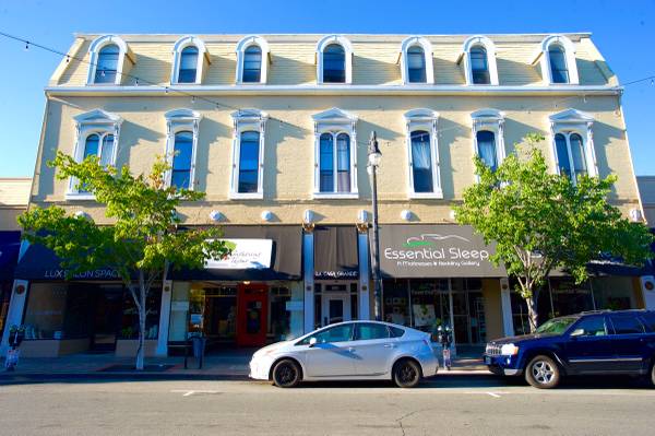 The property was recently featured in Marin Magazine, defining it as "an elegant example of the French Second Empire Style". The article boasted about its "curved-arch dormer windows" and praising that it "was one of the grandest hotels in Marin County when it was built in 1875"! Now the building is home to 25 apartments and ground floor shops!