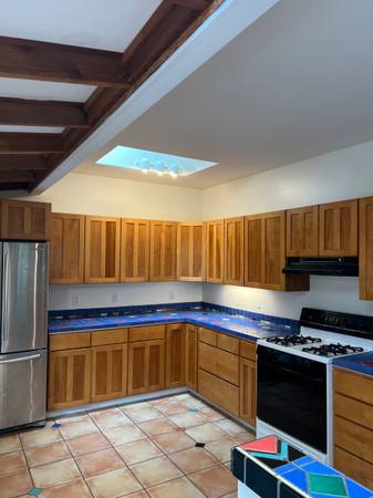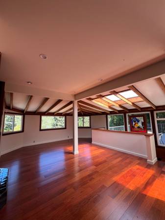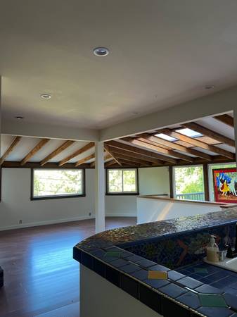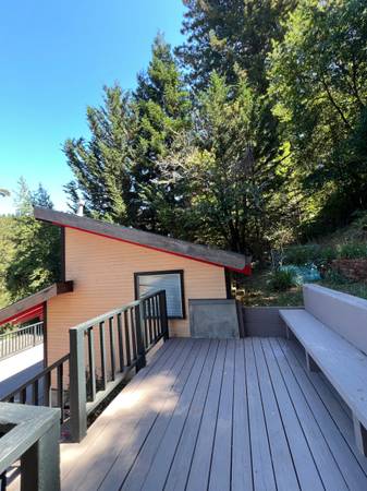 Gorgeous and unique artist's home nestled in the trees of Lagunitas! Four spacious bedrooms, three full bathrooms, huge deck with views of the trees, private back patio and plenty of space for gardening. Craftsman details throughout, exposed beams and beautiful custom mosaic work in kitchen, bathroom and wood burning stove area of living room. Kitchen features stainless steel fridge and brand new dishwasher. Washer dryer included. Radiant floor heating on second and third floor. New gas heater in first floor bedroom. Driveway fits 3 cars comfortably. Cats allowed, no dogs (sorry). This is a very special quiet neighborhood with great neighbors and walkable to the Lagunitas Store. Lagunitas Elementary is a five minute drive away and Archie Williams high school is a 15 minute drive or bus ride. 15-20 minutes to Point Reyes and Inverness. Looking for tenants who will love and care for this house and make it their own!