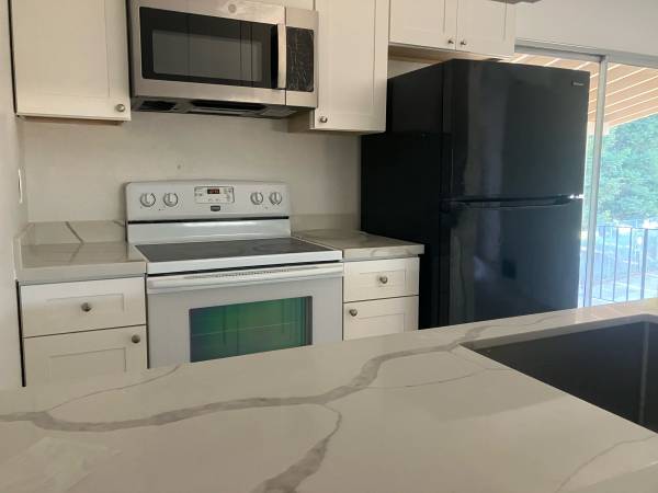 Two bedroom, 1.5 bath, upstairs apartment in a fourplex.
