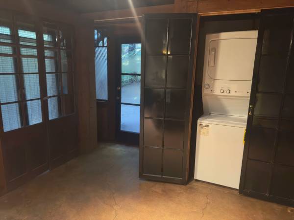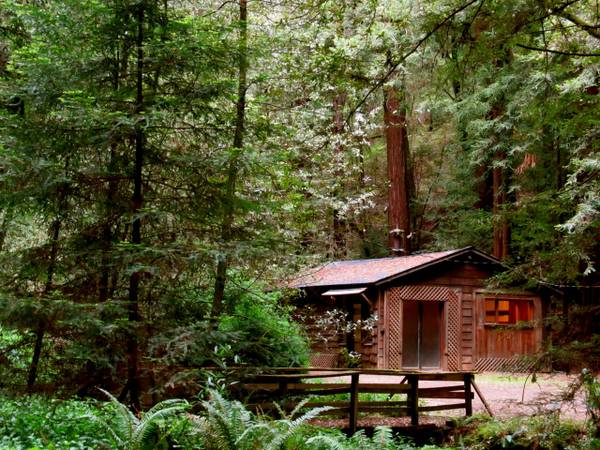 Charming rustic studio cabin in a tranquil forested setting aside a seasonal creek in the idyllic hamlet of Nicasio.Trussed beamed ceiling and a clawfoot tub with shower make for an intriguing and unique environment. The cabin is situated on a wooded property with glorious towering Redwoods with the main house up the hill.