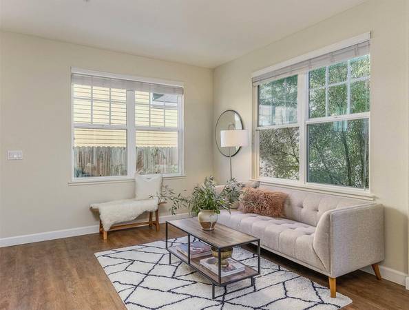 101-129 Hansen Way Petaluma CA 94954 Hansen Place Townhomes offers a vibrant and modern living experience just minutes from the North San Francisco Bay and Sonoma Wine Country. Residents enjoy spacious layouts with 9-foot ceilings and luxury flooring that enhance the sophisticated ambiance of each home. Natural light floods the interiors through dual-pane windows, creating a warm and inviting atmosphere. The community features water-efficient landscaping, a private terrace, and a charming wrap-around porch, perfect for relaxing or entertaining guests. Convenience is key, with attached two-car garages, full-sized washers and dryers, and an in-home washer and dryer set to simplify daily routines.