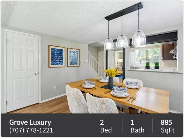 When you come home, you deserve to feel at home! At the Grove Luxury Apartments, we make that easy. Perfectly located halfway between bustling San Francisco and the gorgeous Napa Valley wine country, The Grove features luxury apartments with resort-style amenities designed to provide a luxury lifestyle. We are proud to offer a variety of floor plans and benefits, making it easy to find your dream apartment complex in Petaluma, CA. Â Call us today to schedule a tour!