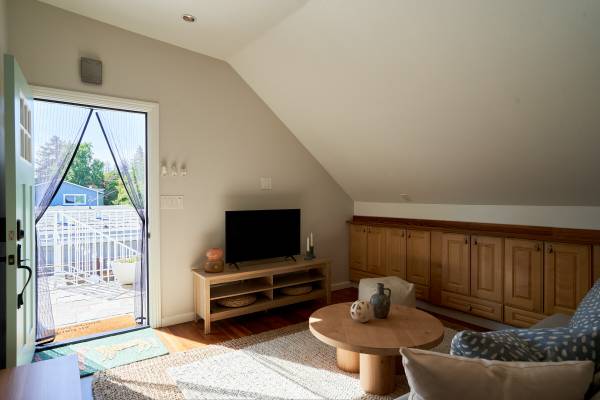 The loft has a roomy office with a standing desk and ergonomic desk chair as well as a reading corner to unwind during the workday. With high-speed reliable internet, the Hideaway Loft is ideal for remote workers.